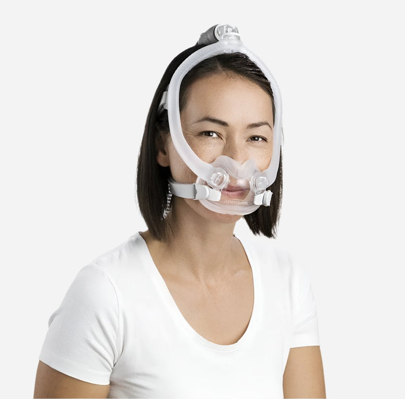 Un masque CPAP intégral connecté au sommet de la tête et à contact minimal, conçu pour le confort, la liberté de mouvement et une thérapie efficace.