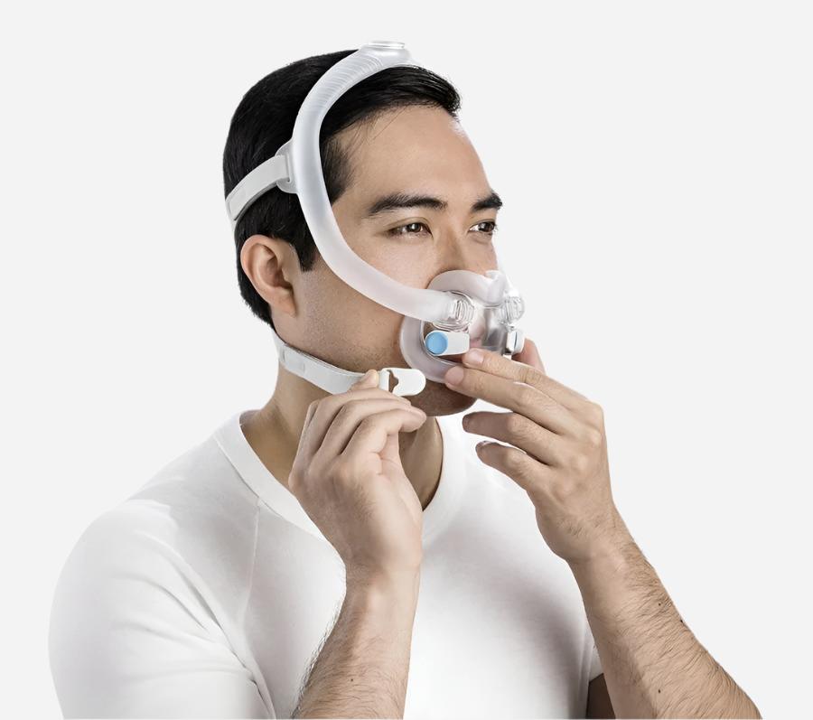 Le masque CPAP intégral AirFit™ F30i offre une conception innovante à contact minimal qui favorise une thérapie efficace tout en améliorant le confort et la mobilité pour une expérience de sommeil plus réparatrice.