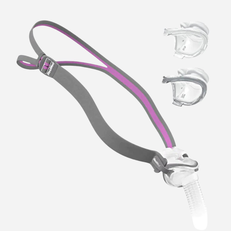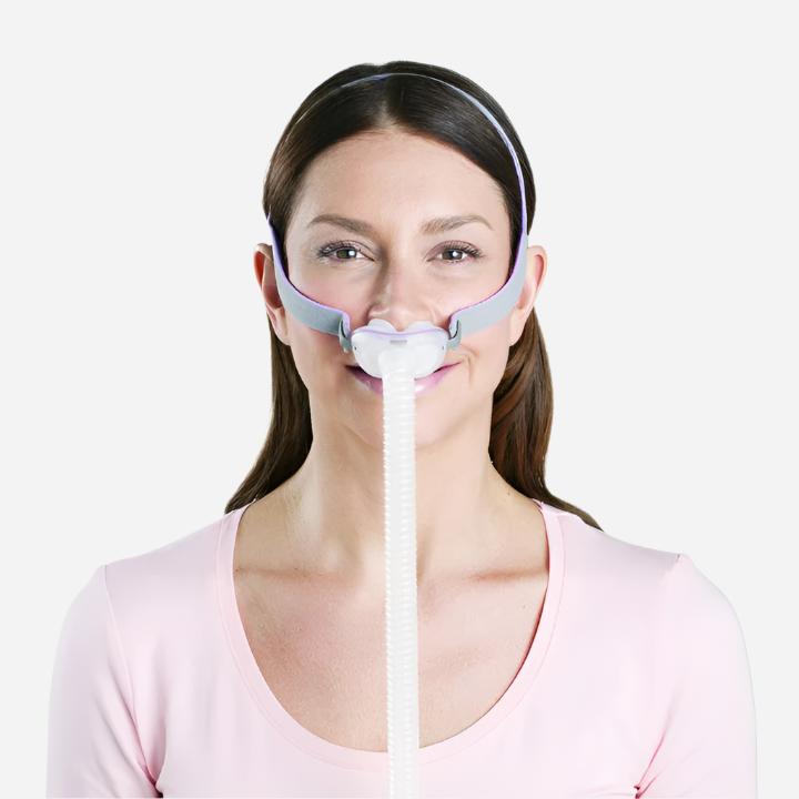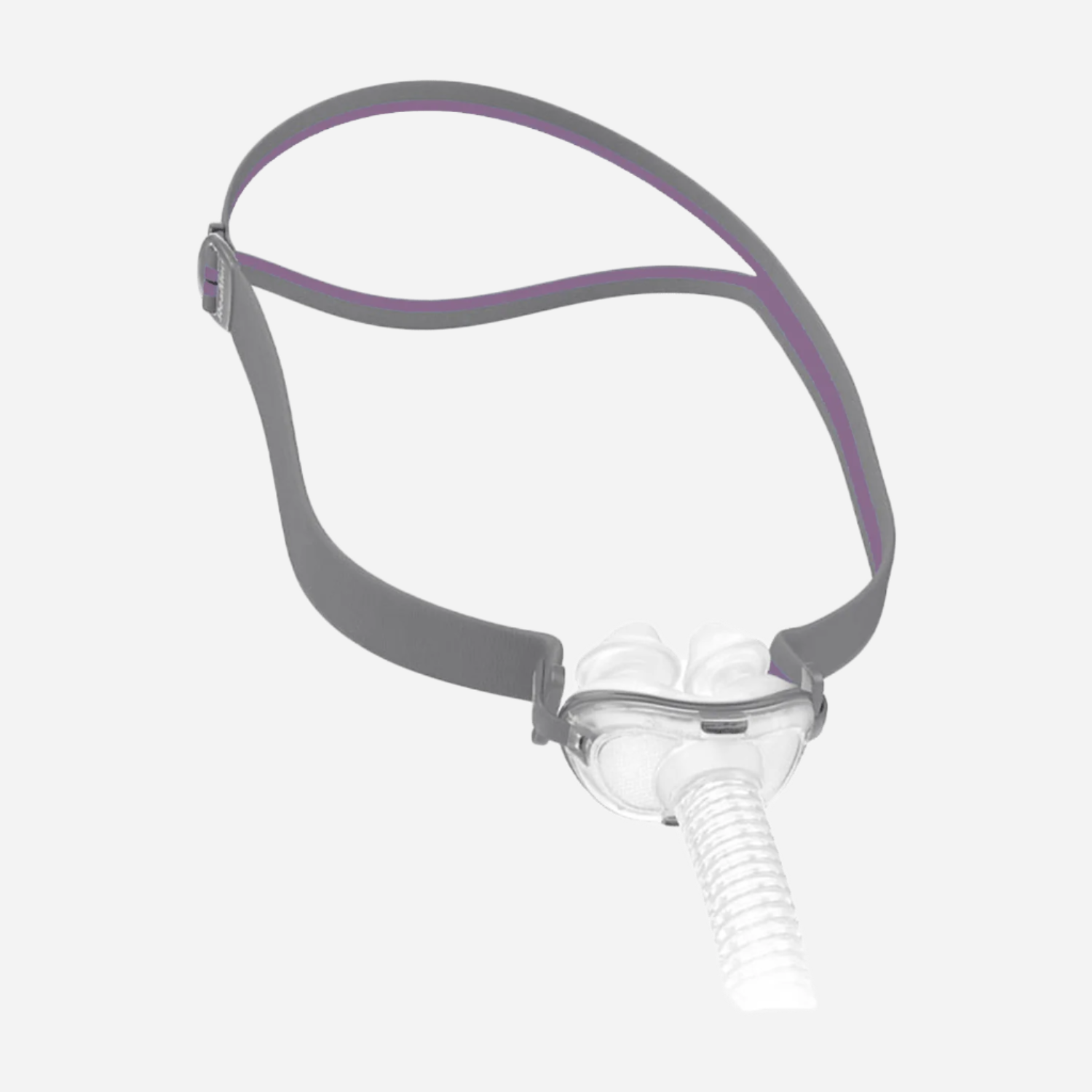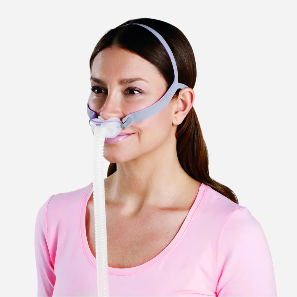 Un masque nasal léger et ultra-silencieux conçu pour les femmes, doté d'un ajustement à contact minimal, d'oreillers à double paroi et d'un harnais réglable « Pour elle » pour une thérapie du sommeil efficace.