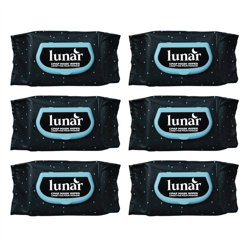 Lunar CPAP Wipes 70 Pack offers a gentle, effective way to clean your CPAP mask and accessories— no mess, and no added fragrances. Designed specifically for CPAP users, these extra large wipes (8" x 6") remove facial oils, residue, and buildup without irritating skin or damaging equipment.