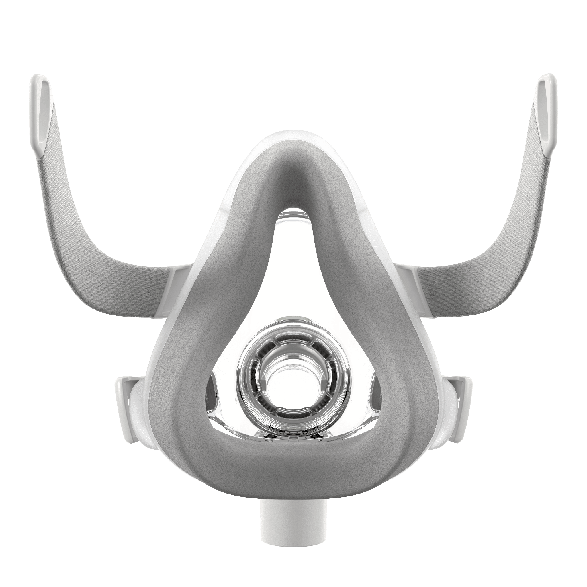 A full-face CPAP mask featuring an ultra-soft memory foam cushion for a personalized fit, reduced pressure points, and a secure, leak-resistant seal during sleep therapy.