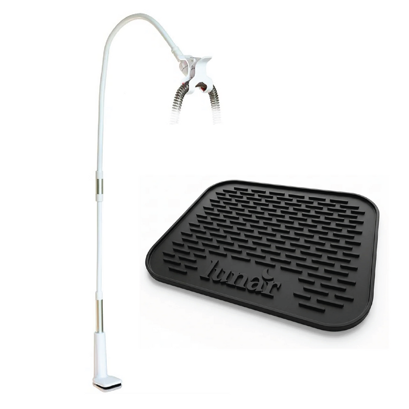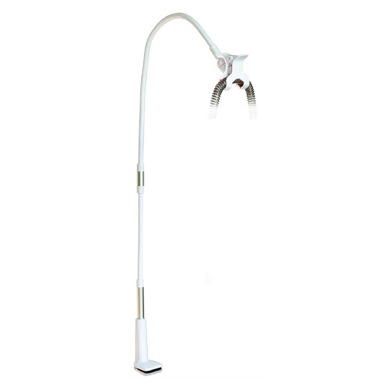 A durable and adjustable CPAP hose management system designed to keep tubing elevated and tangle-free, preventing mask drag and ensuring uninterrupted sleep therapy.